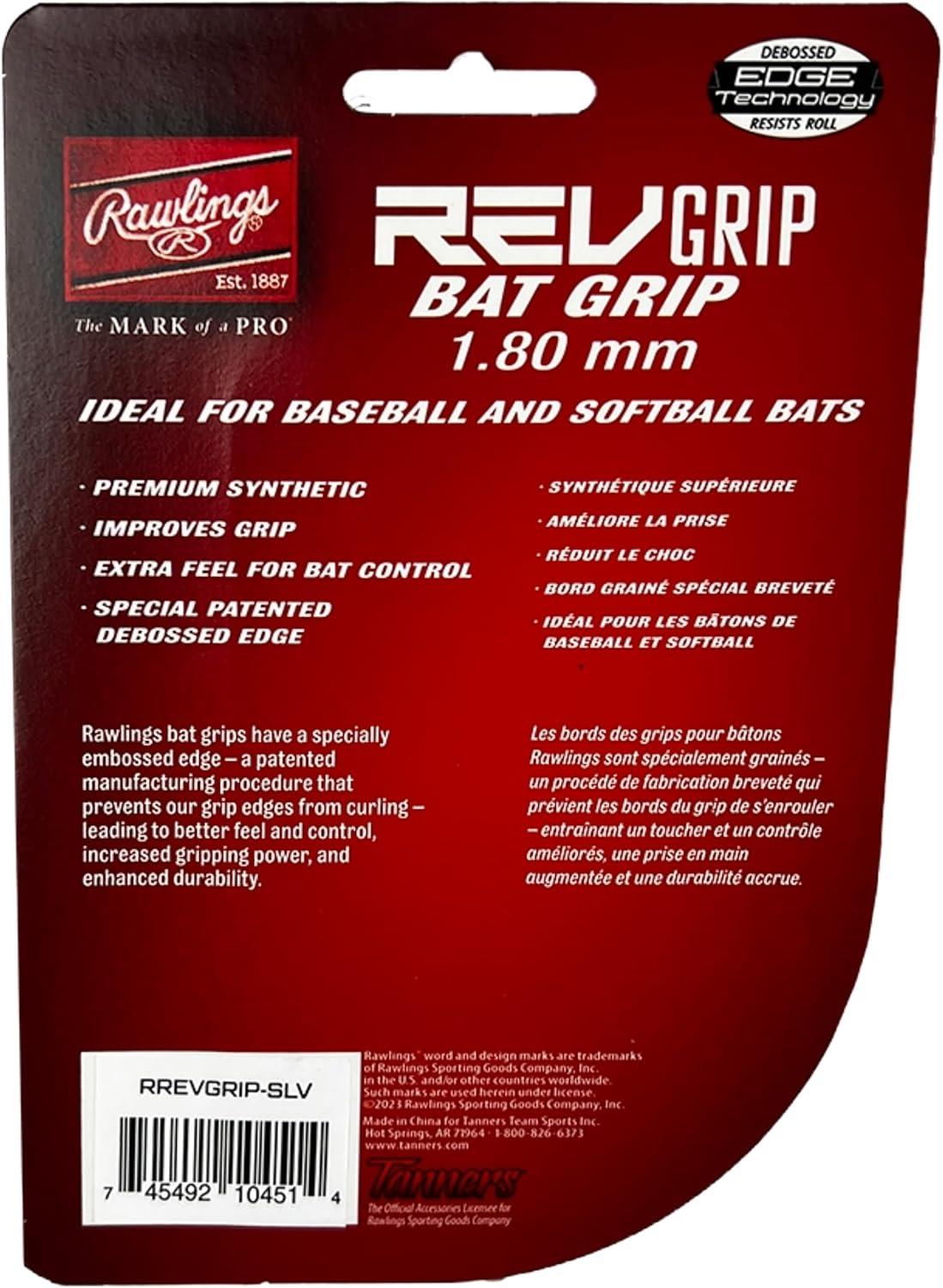 Rawlings | 1.00mm / 1.80mm / 2.75mm Bat Grip | Baseball / Softball | Multiple Colors(Silver & Black)