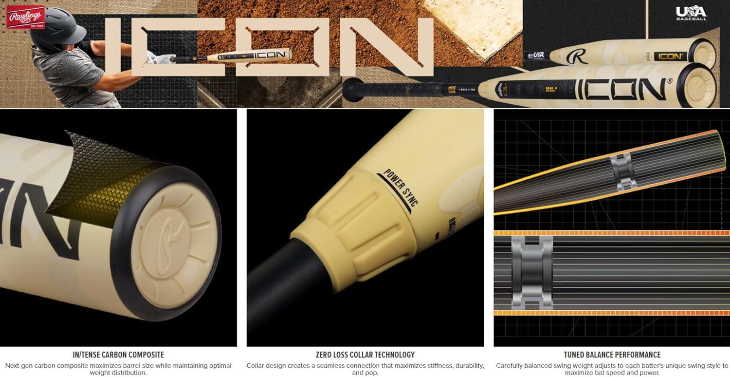 Rawlings | 2025 | ICON Baseball Bat | USA | -12 / -10 / -8 Drop | 2 5/8′ Barrel | 2 Pc. Composite(-12)
