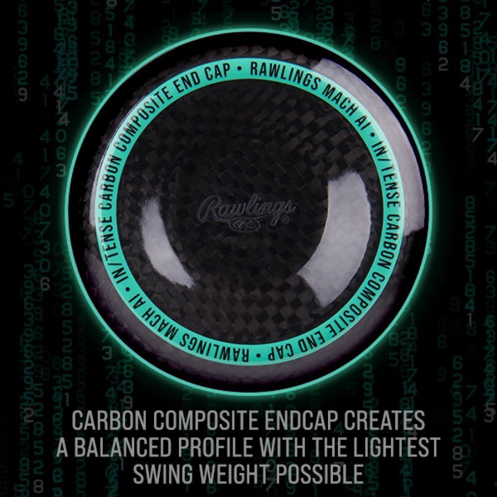 CARBON COMPOSITE ENDCAP | This bat features a carbon composite endcap which removes weight from the end of the bat and allows for faster swing speeds without sacraficing any barrel mass