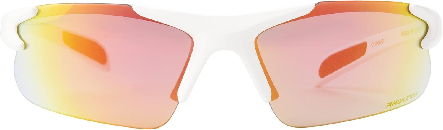 Rawlings Base Runner Youth Baseball Sunglasses, Shiny White/Orange Mirror, 66mm
