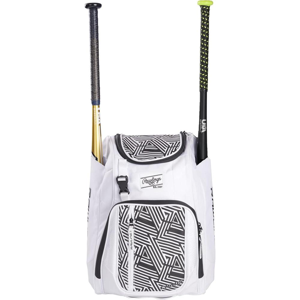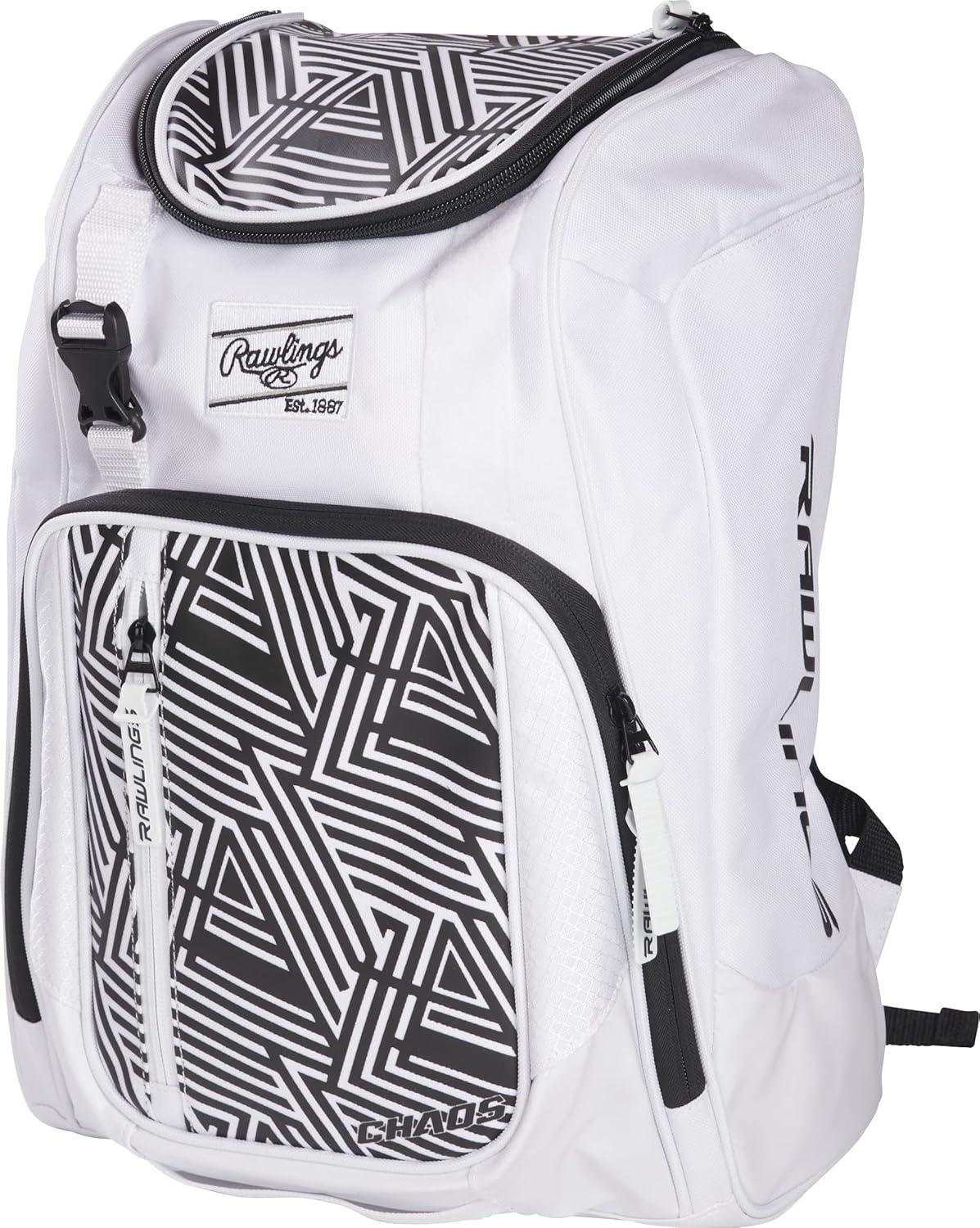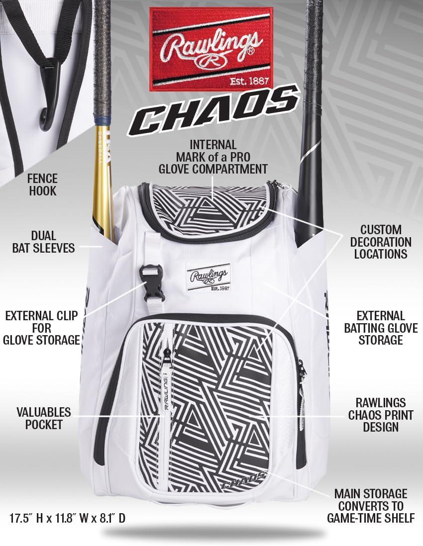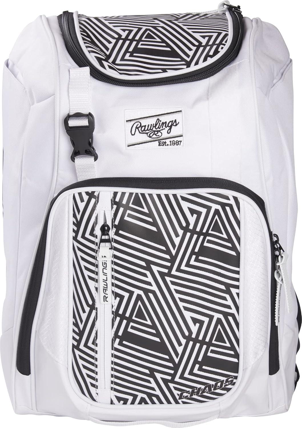 Rawlings | CHAOS Backpack Bag Series | T-Ball & Youth | Baseball & Fastpitch Softball | Multiple Colors(White)