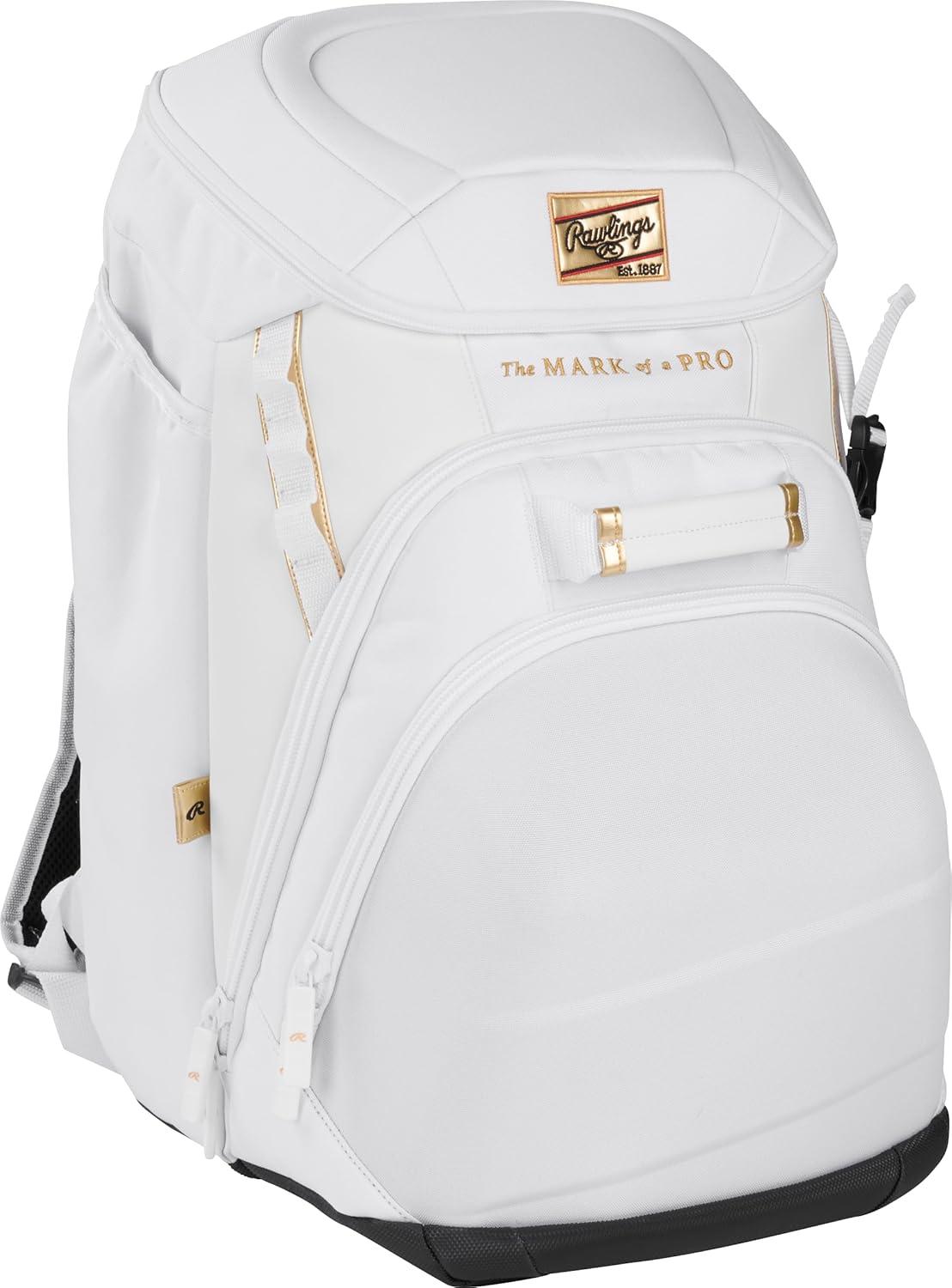 Rawlings Gold Collection Backpack Equipment Bag | Baseball/Softball | Multiple Styles(White)