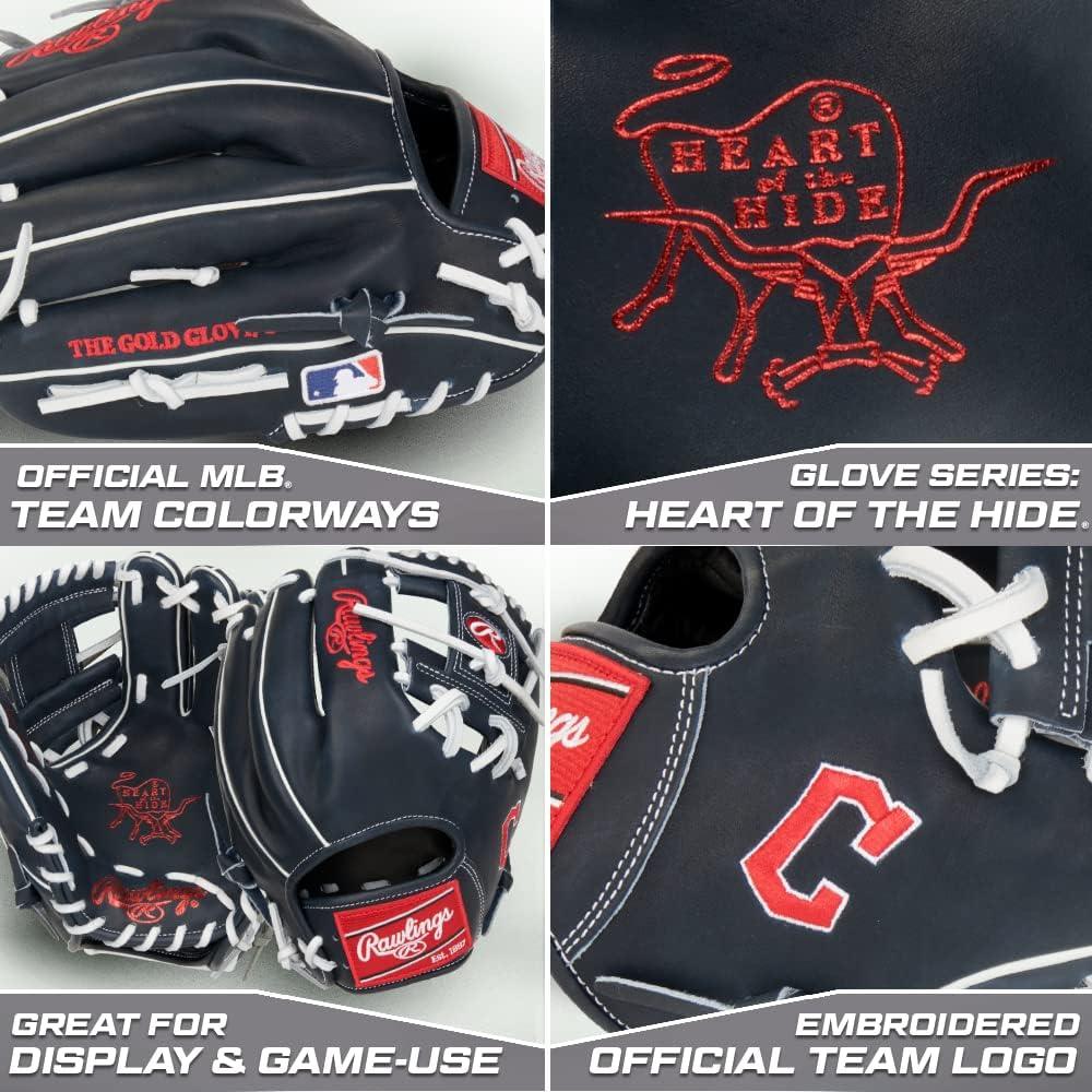 Rawlings | Heart of The Hide MLB Team Logo Baseball Glove | All MLB Team Options Available(Cleveland Guardians – 11.5″ – Pro I-Web)