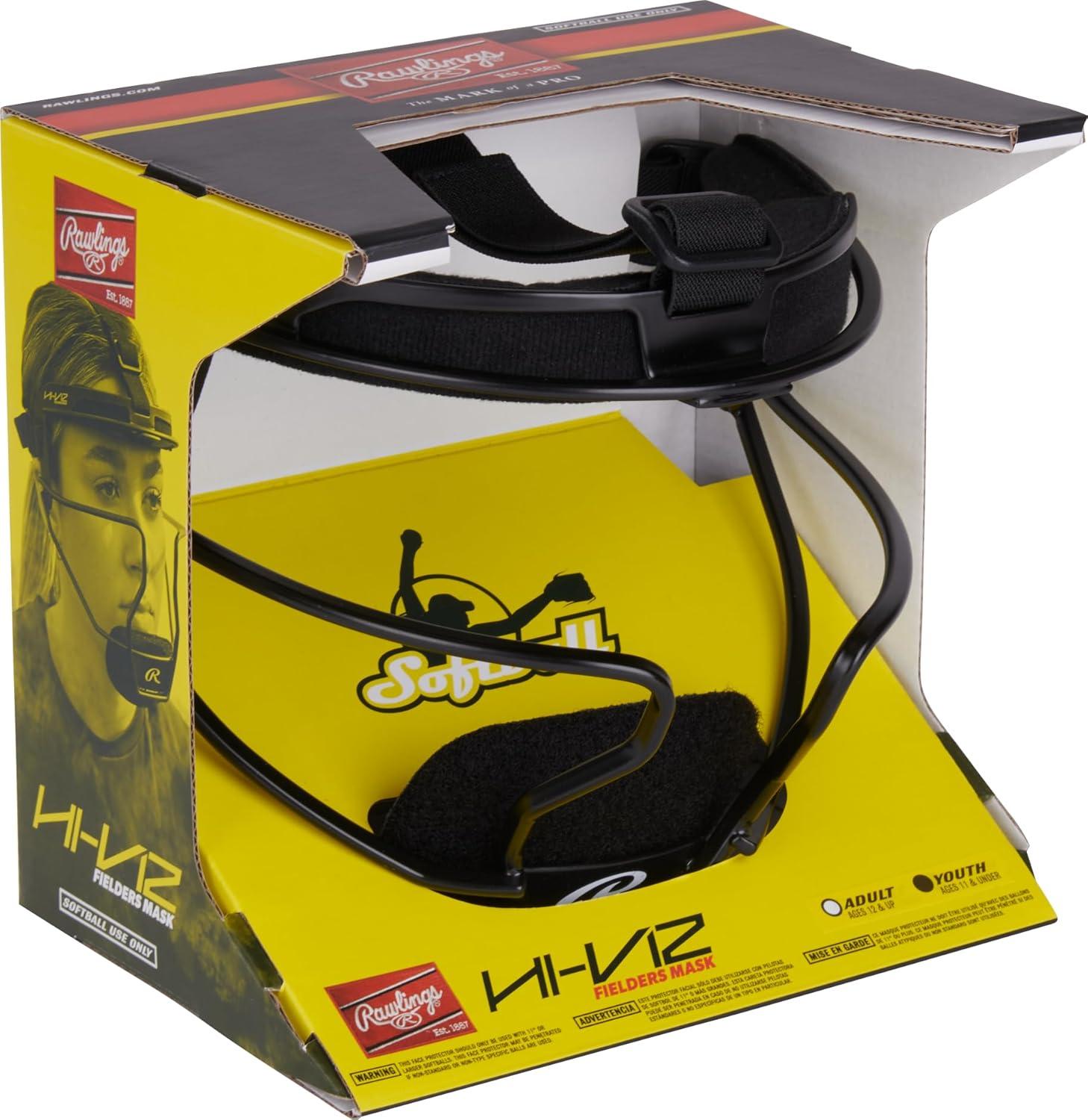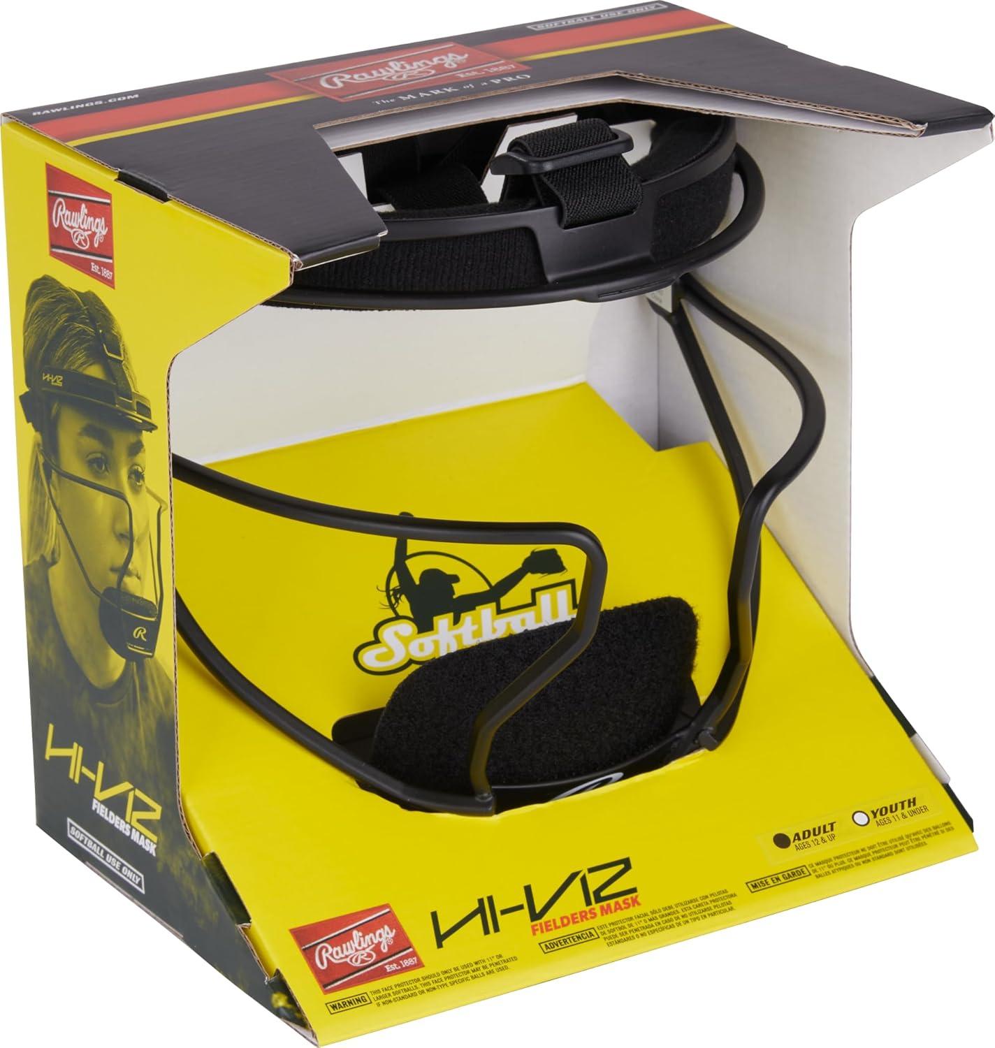 Rawlings | HI-VIZ Ultra Softball Fielder’s Mask | Black/White | Adult & Youth Sizes(Black)