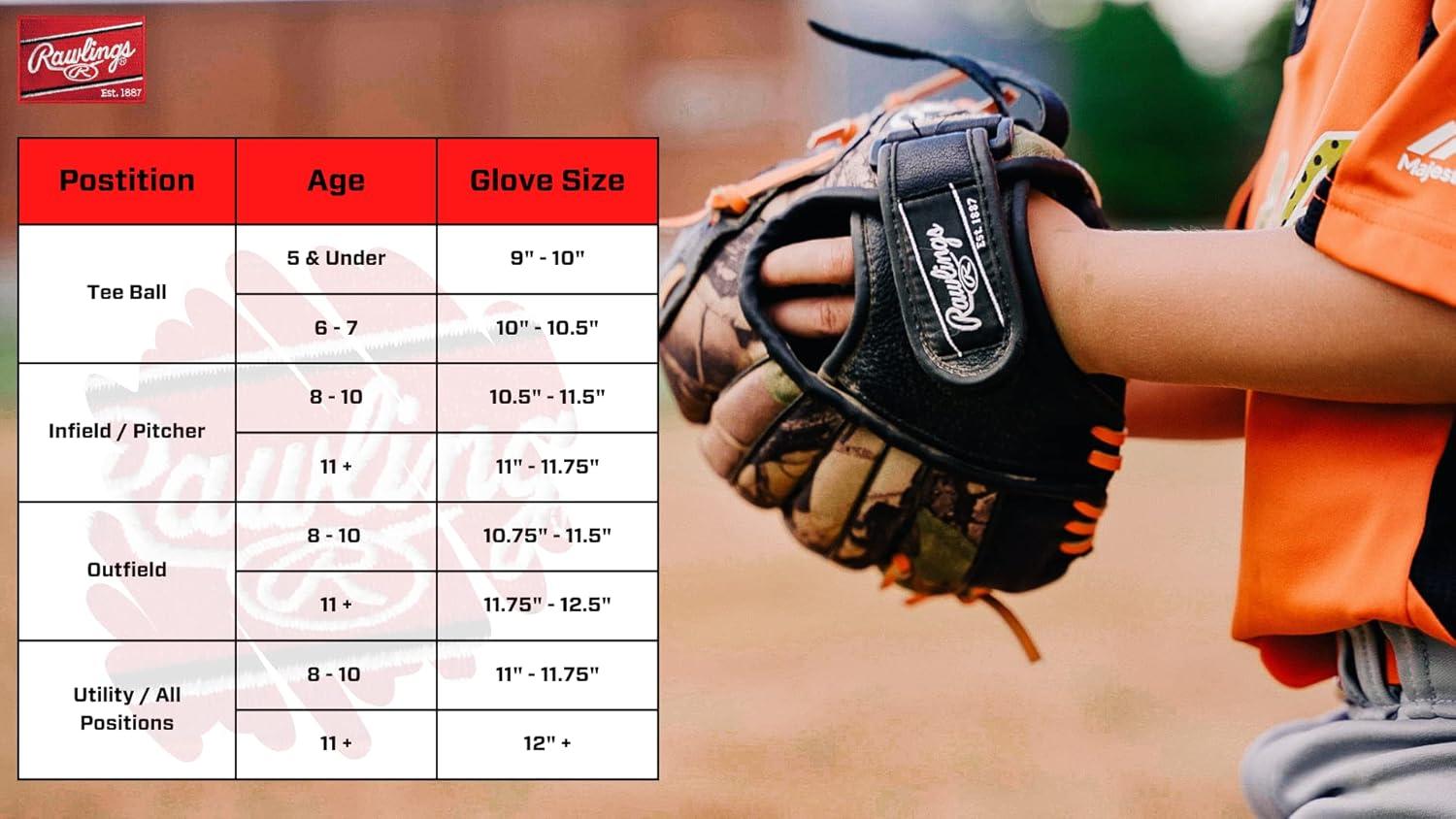 Rawlings Playmaker Camo Kids Baseball Glove for Kids 5-8 – TBall Glove – 10.5″ – Right Hand Throw – Glove Fits on Left Hand – Make Selection Carefully