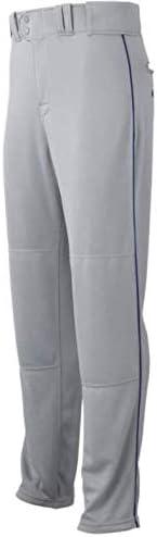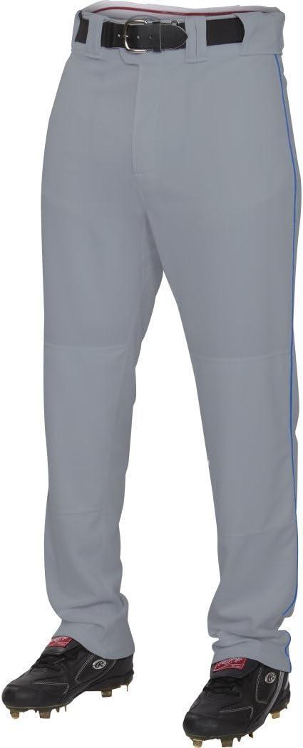 Rawlings Men's PRO150 Semi-Relaxed Fit Piped Baseball PantFeatures * Pro-Dri technology is great for keeping you fresh during a warm day at the ballpark * Constructed with stain resistant fabric, making them perfect for extended use * Wide elastic waistband with gel gripper strips for additional comfort and support * Semi-relaxed fit * 2-snap closure * Care: machine wash, tumble dry * Material: 100% circular knit polyester Stain-Resistant FabricConstructed with stain resistant fabric, making them perfect for extended use.Keeps Jersey TuckedWide elastic waistband with gel gripper strips to help keep your jersey tucked in.Convenient StorageTwo back pockets for convenient storage.