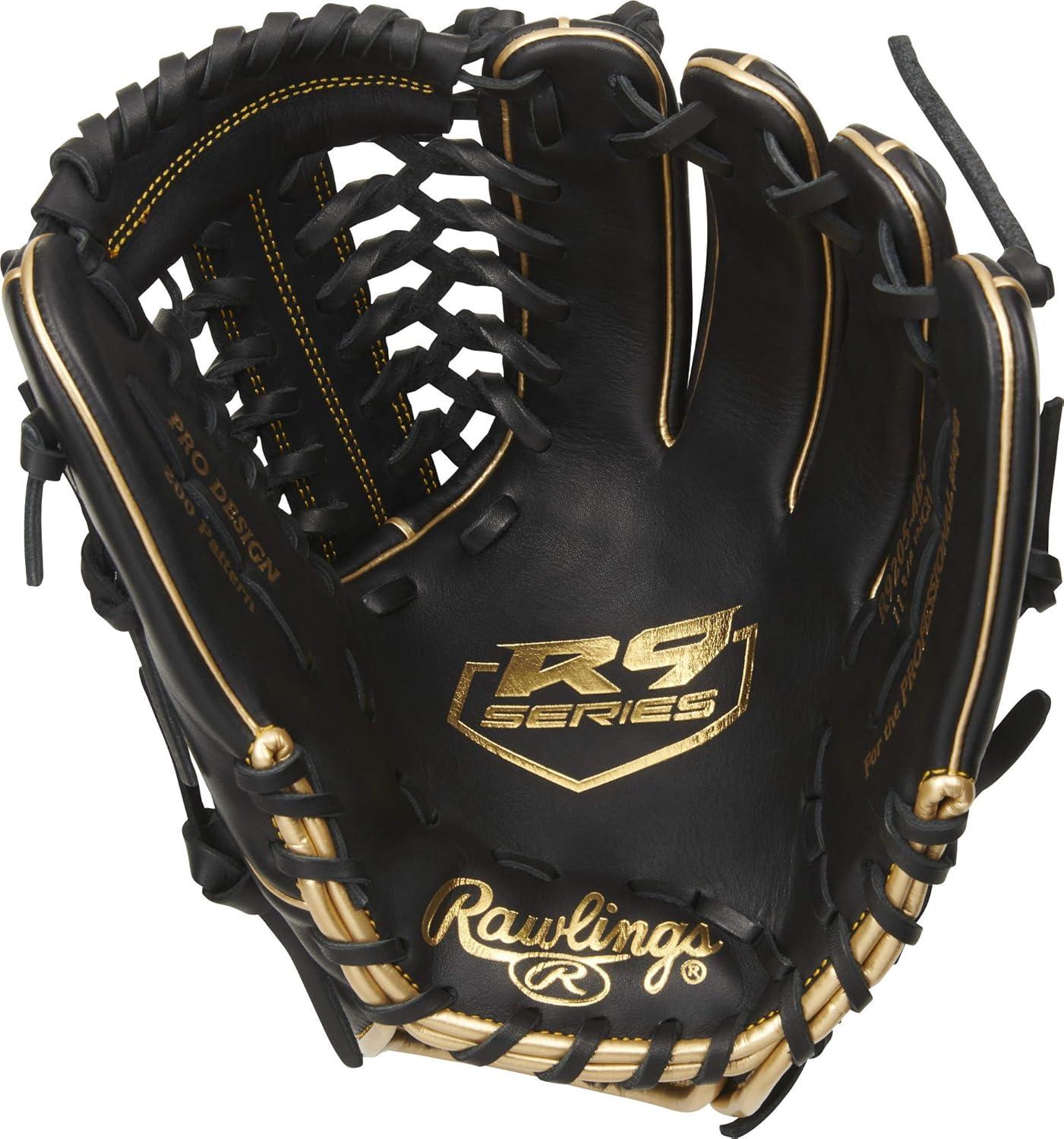 Rawlings | R9 Series Baseball Glove | Sizes 11.5″ – 12.75″ | Multiple Styles(Modified Trap-eze Web | Black / Gold)