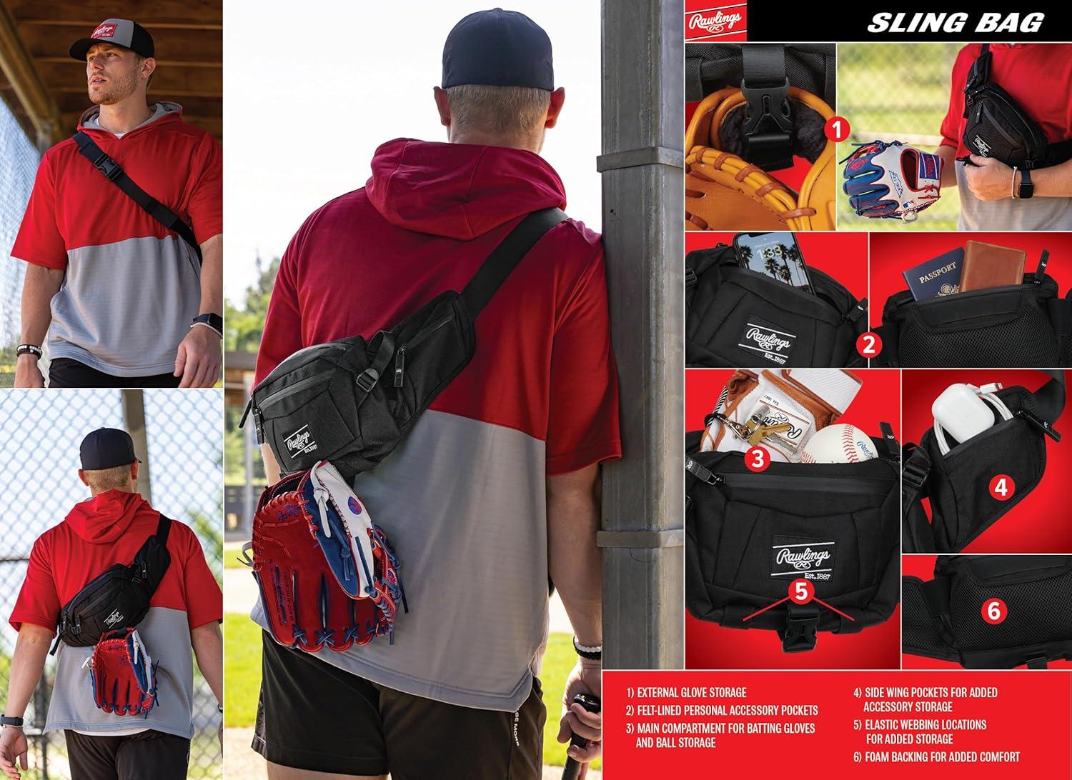 Rawlings | Sling Crossbody Bag | Baseball/Softball Accessory | Multiple Styles(Black)