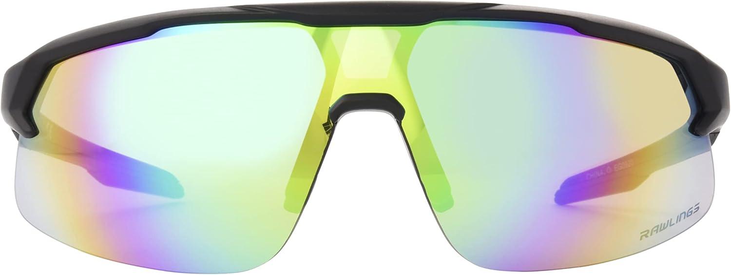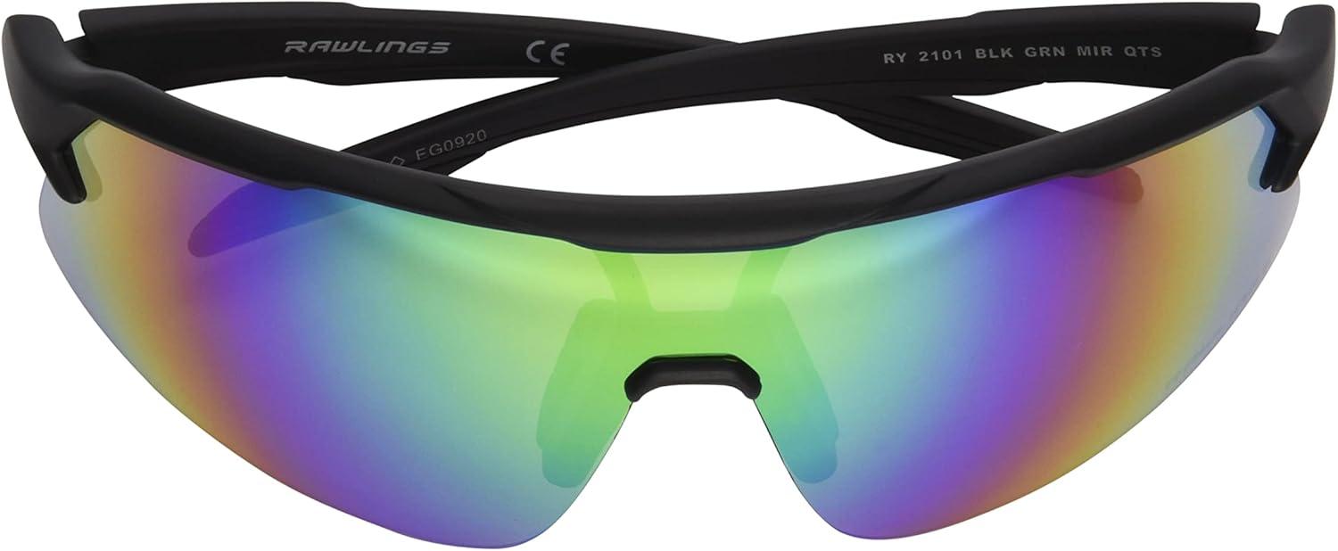 Rawlings Strike Zone Shield Youth Baseball Sunglasses, Matte Black/Green Mirror, 81mm