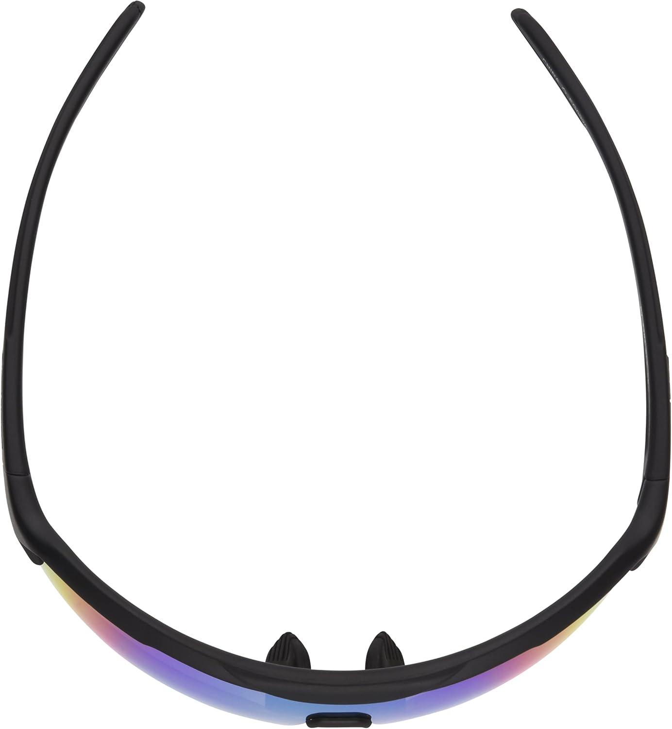 The Strike Zone Rawlings sunglasses for boys provide 100% UVA/UVB eye protection in a cool shield-style frame made out of matte black plastic, so your baseball player can focus on hitting home runs, not the blinding sun. Black rubber tips accent the temples of these kids' sunglasses and, together with the black rubber nose pads, help to hold the youth sports sunglasses securely in place, so they won't fall off when he's rounding the bases. For the ultimate in style and performance, green mirror lenses are also scratch- and impact-resistant with a hydrophobic coating that helps them to repel water. Rawlings sunglasses are perfect for your active lifestyle, whether you're playing in the big game or watching it from the stands.