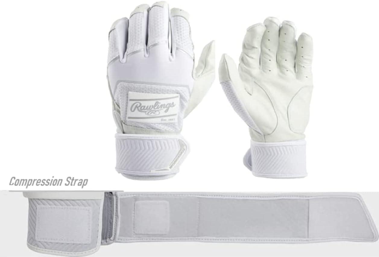 Rawlings | Workhorse Baseball Batting Gloves | Compression Strap | Youth(White)